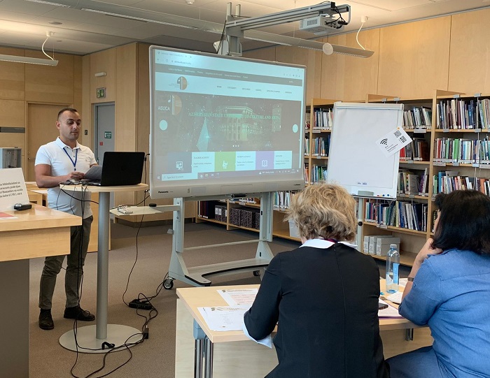 Universitetdə tədris prosesinin səmərəli təşkilində, professor-müəllim heyəti və tələbələrin informasiya təminatı sahəsində kitabxananın həyata keçirdiyi innovasiya yönümlü işlər əyani şəkildə yay məktəbinin iştirakçılarının diqqətinə çatdırılıb. Latviya Universitet kitabxanasının tətbiq etdiyi yeniliklərin ADMİU-nun Kitabxana-İnformasiya Mərkəzində həyata keçirilməsi ilə bağlı suallar ətrafında müzakirə keçirilib. Riqa şəhərində yerləşən bu müəssisənin çoxaspektli iş təcrübəsi hərtərəfli öyrənilib və hər iki universitet kitabxanasının ingilis və rus dillərində tədris ədəbiyyatı sahəsində rəqəmsal sənəd-informasiya mübadiləsinin perspektivlərinə dair fikir mübadiləsi aparılıb. Hər iki kitabxananın elektron məlumat bazalarına çıxış imkanları müzakirə edilib. Kitabxana-İnformasiya Mərkəzi tərəfindən Azərbaycan haqqında ingilis dilində nəfis nüsxəli nəşr Latviya Universitet kitabxanasına bağışlanıb.