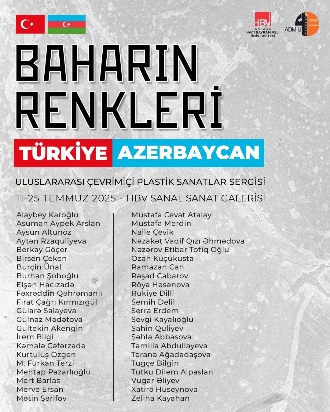 Bu sıradan 11-25 iyul arasında HBV Virtual Sənət Qalereyasında keçirilən “Baharın rəngləri” adlı Beynəlxalq Onlayn Plastik Sənətlər Sərgisi əlamətdardır.
