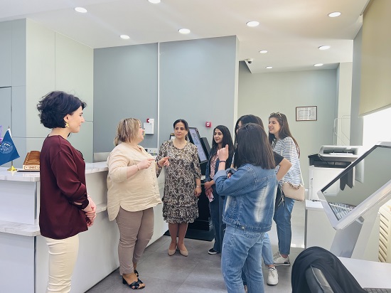 Təcrübə müddətində tələbələr Azərbaycan Dövlət İqtisad Universitetinin (UNEC) Kitabxana-İnformasiya Mərkəzinin fəaliyyəti ilə də əyani tanış olublar. Tələbələr öncə UNEC KİM-in əsaslı kitabxanası və 1 saylı kitabxanasının iş təcrübəsini öyrəniblər. Onlar kitabxanada kitabın texniki işlənməsi və çiplənməsi, oxuculara ənənəvi və elektron formada kitab verilişinin təşkili, resursların kitabxanadaxili istifadəsi, elektron kataloq və məlumat bazaları ilə iş proseslərini əyani olaraq izləyiblər. Tələbələr daha sonra UNEC KİM-in 24/7 kitabxanasına baş çəkib, buradakı texnologiyalar, zəngin kitab fondu, elektron kataloqda axtarış prosesləri ilə tanış olublar. Sonda tələbələrin kitabxana proseslərinə dair sualları cavablandırılıb.