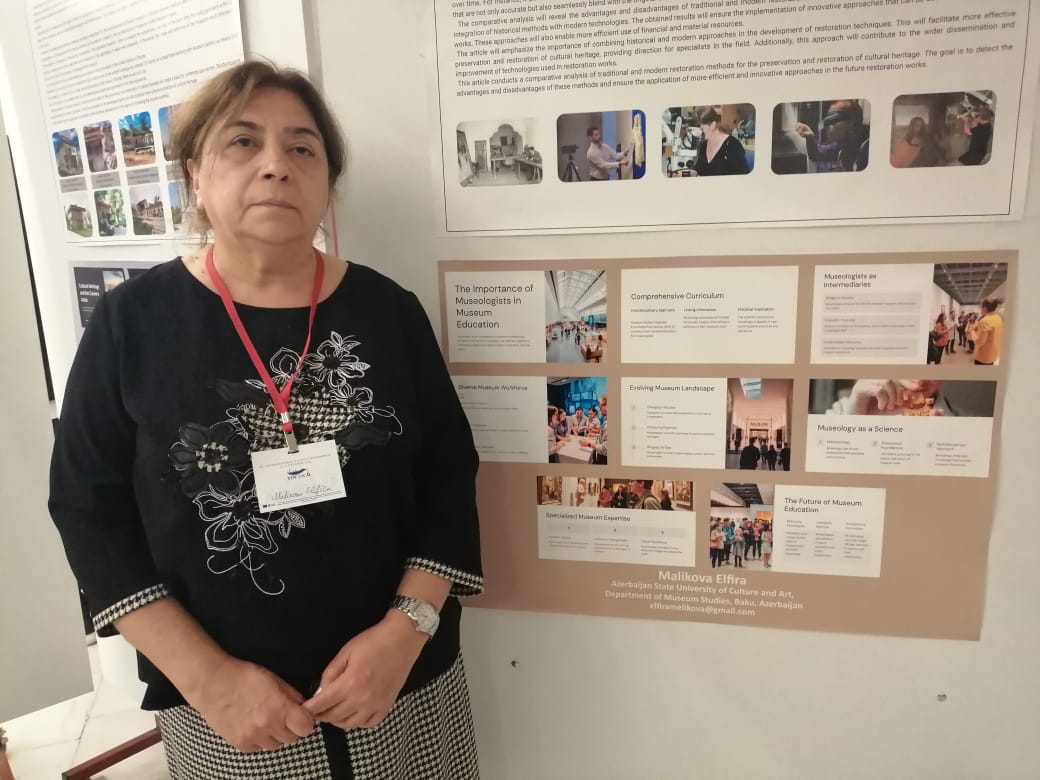 Konfransda Azərbaycan Dövlət Mədəniyyət və İncəsənət Universitetini təmsil edən “Muzeyşünaslıq” kafedrasının dosenti, sənətşünaslıq üzrə fəlsəfə doktoru, muzeyşünas alim Elfira Məlikova yetişməkdə olan muzeyşünasların rolunu önə çəkərək “Muzey işinin öyrənilməsində muzeyşünaslığın mühüm rolu” adlı məqaləsini konfrans təsisçilərinə təqdim edib və ADMİU-nun “Muzey, arxiv işi, abidələrin qorunması” ixtisasını bitirən bir sıra məzunların təkcə muzeylərdə deyil, eyni zamanda Bərpa mərkəzlərində bərpaçı (restavrator) kimi çalışdıqlarını, xüsusilə də muzeyşünasların muzey işində əhəmiyyətli rolunu daha qabarıq şəkildə vurğulayıb.