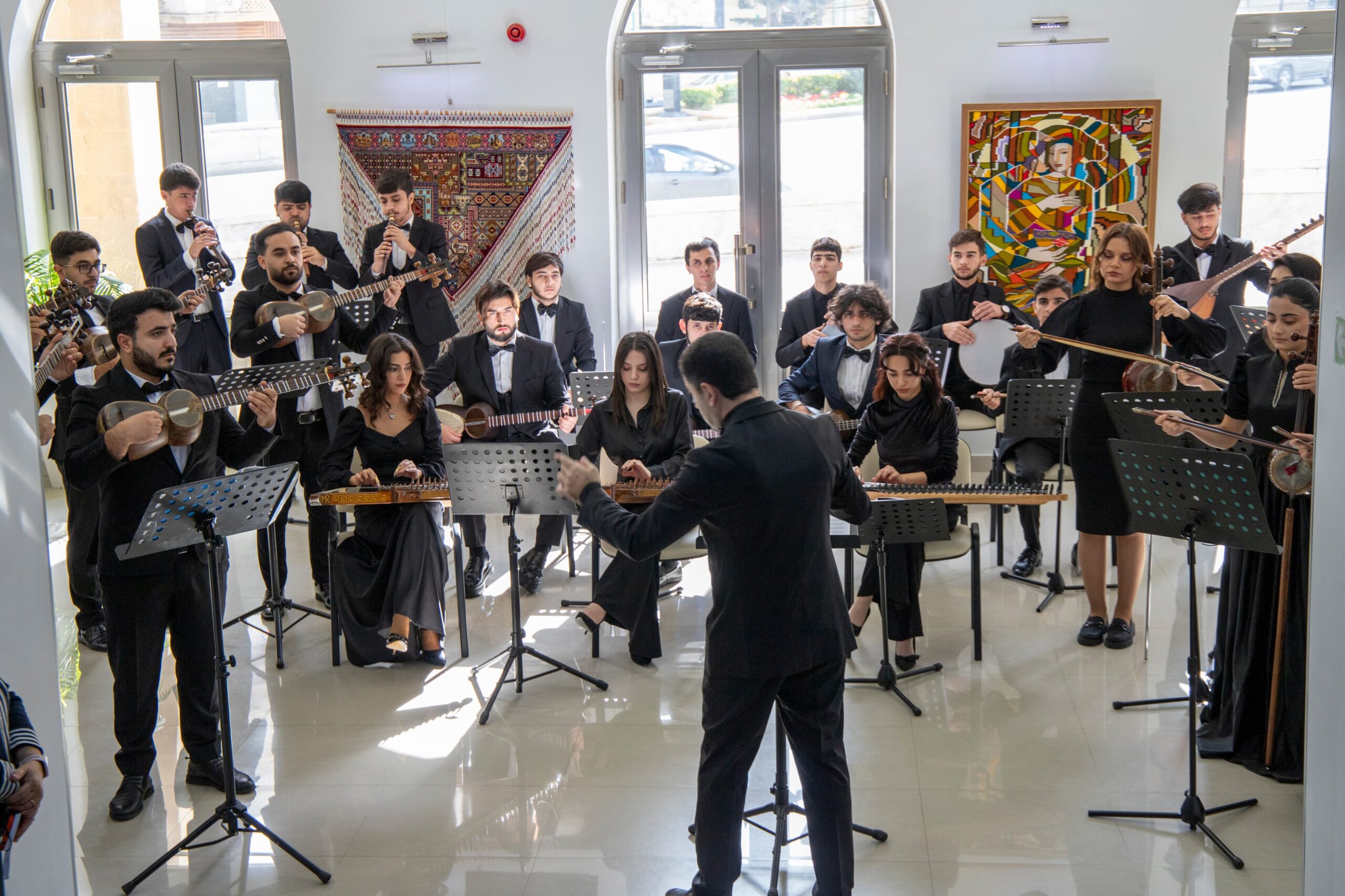 Daha sonra tədbir bədii hissə ilə davam edib. Bədii hissədə ADMiU-nun tələbələrdən ibarət Xalq Çalğı Alətləri orkestrinin (bədii rəhbər və dirijor Beynəlxalq müsabiqələr laureatı Mustafa Aşurov) və Əvəzxan Əzizov, Sərxan Mirzəyev, Səfiyyə Yaqublu, Gülyaz Həsənzadənin ifasında musiqi nömrələri təqdim olunub.
