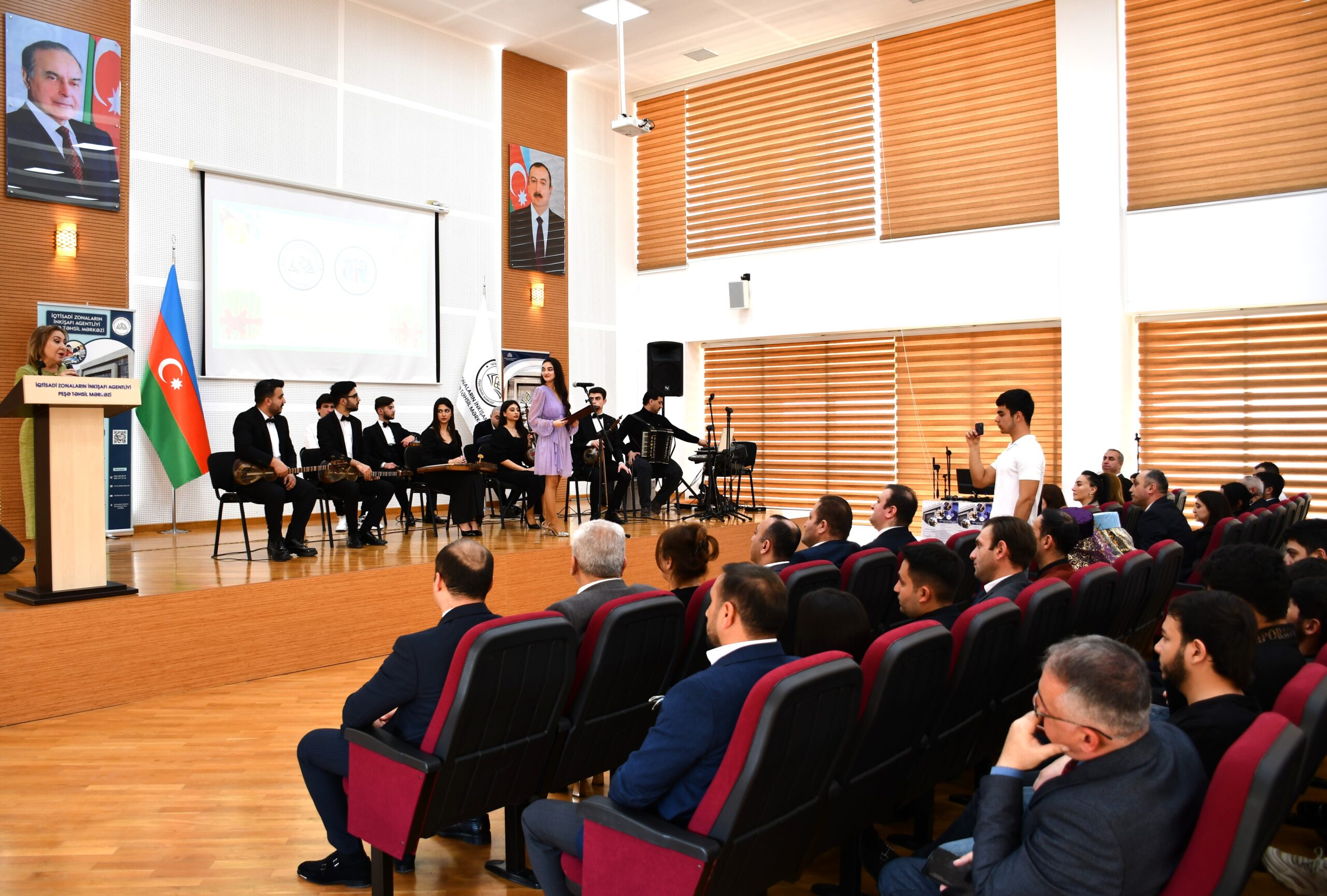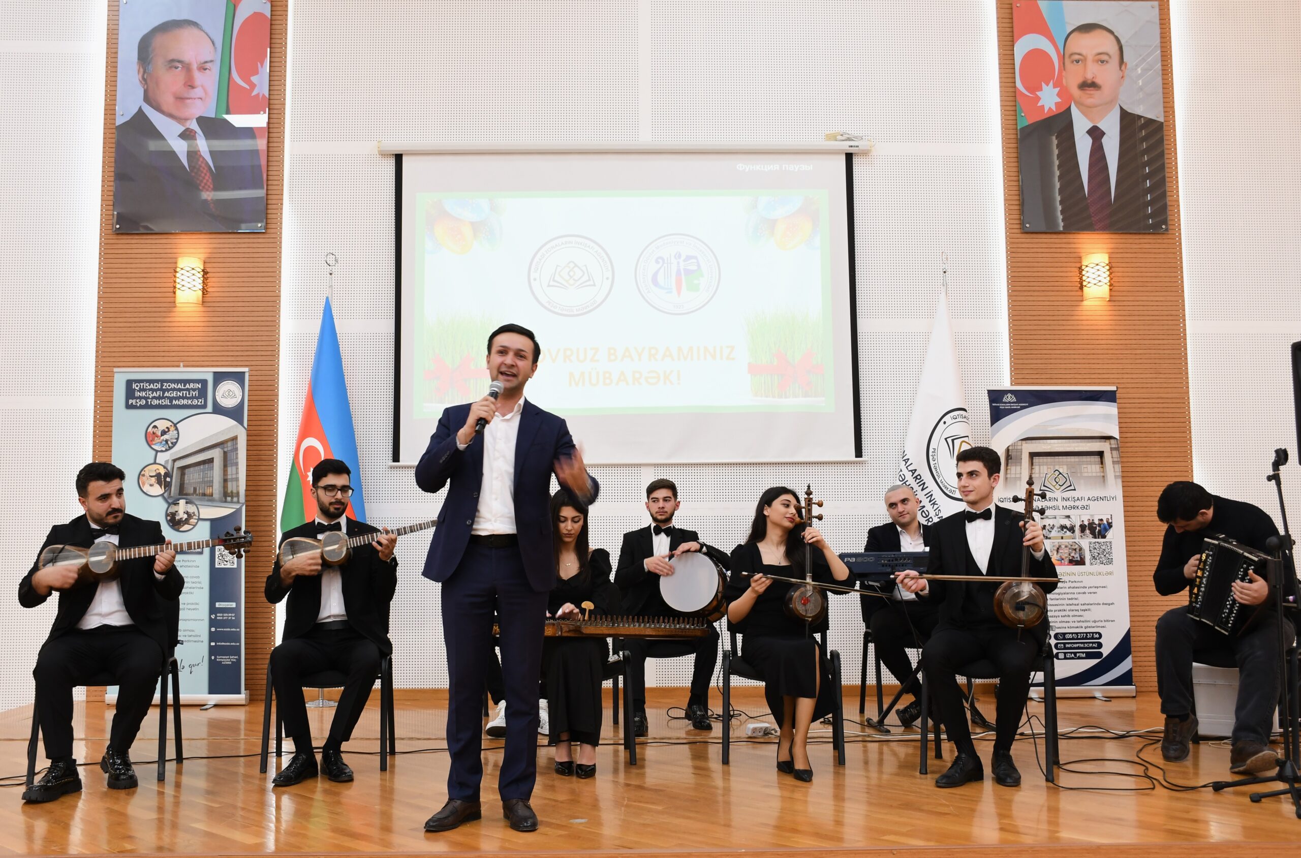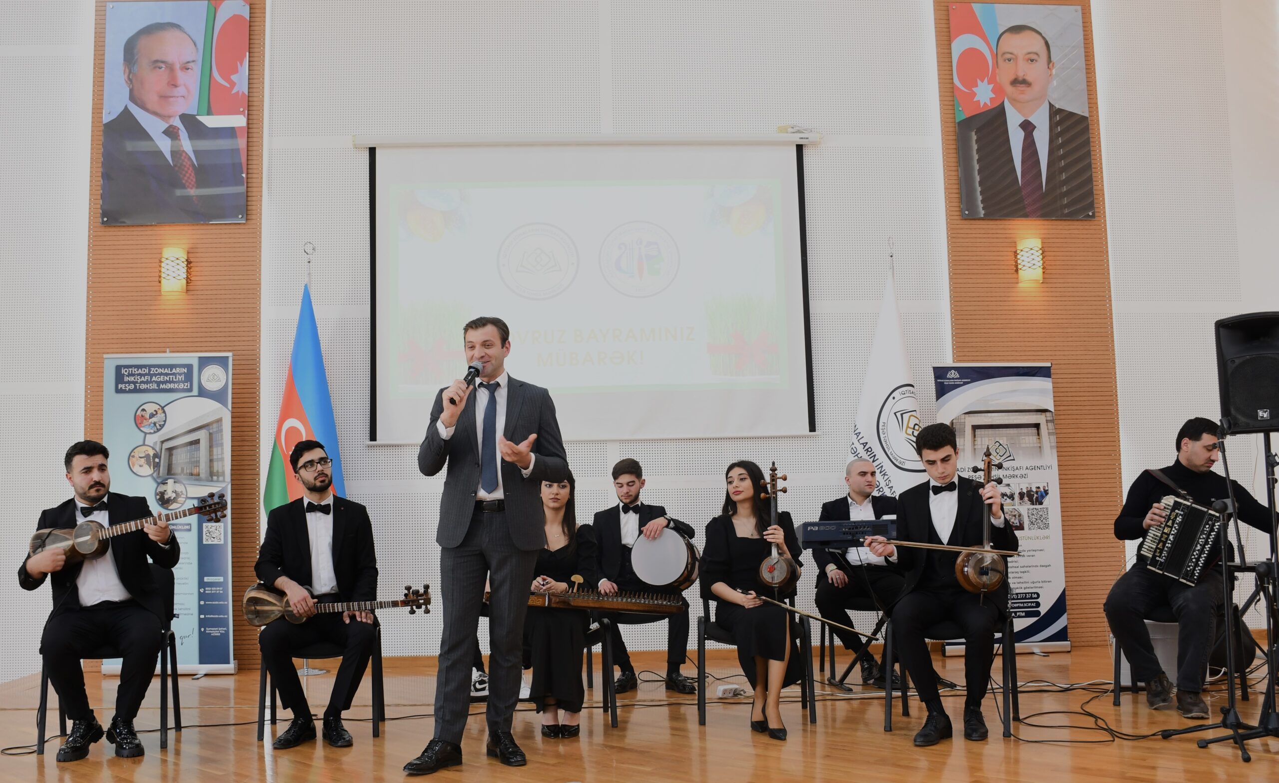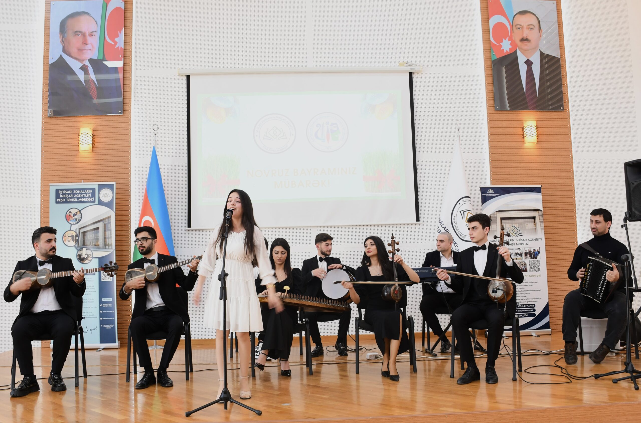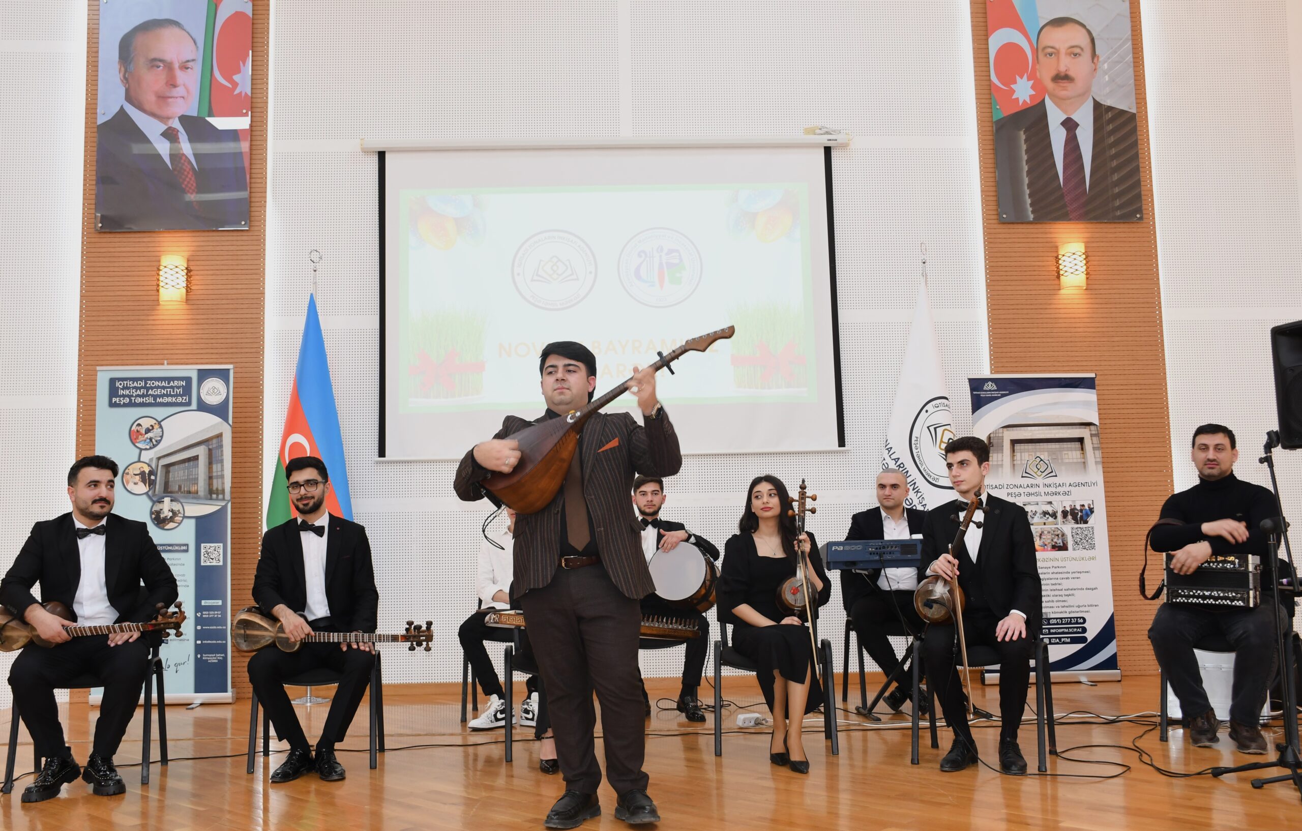 İqtisadi Zonaların İnkişafı Agentliyinin nəzdində Peşə Təhsil Mərkəzinin Tədrisin təşkili şöbəsinin baş mütəxəssisi Cavid Əhmədov və ADMİU Tələbə Həmkarlar İttifaqı Komitəsinin sədri Rusif Əliyevin təşkilatçılığı ilə hazırlanmış tədbirin bədii hissəsində ADMİU-nun tələbə və məzunları- Xasay Şıxıyev, Cahangir Əliyev, Ceyran Abbaslı, Şəmistan Nəcəfzadə, Vüsal Qasımov, Xaqani Zeynalabdinov bir-birindən maraqlı ifalarla iştirakçıların könlünü oxşayıblar. İfaçıları ADMİU-nun “Xalq çalğı alətləri ifaçılığı” kafedrasının tələbələrindən ibarət “Arazbarı” ansamblı müşayiət edib.