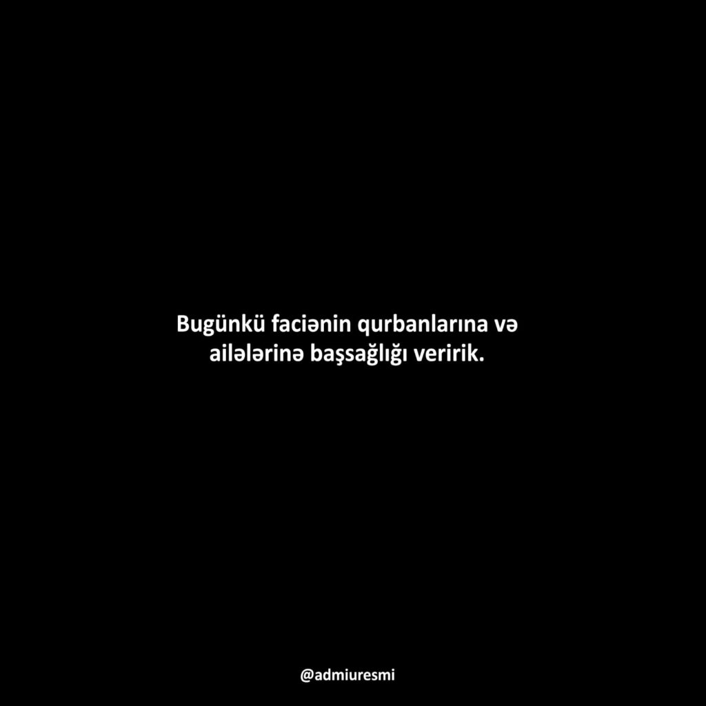 “Azərbaycan Hava Yolları” şirkətinə məxsus Bakı-Qroznı istiqamətində uçan sərnişin təyyarəsinin qəzaya uğraması nəticəsində həlak olanların ailələrinə dərin hüznlə baş sağlığı verir, xəsarət alanlara Allahdan şəfa diləyirik.