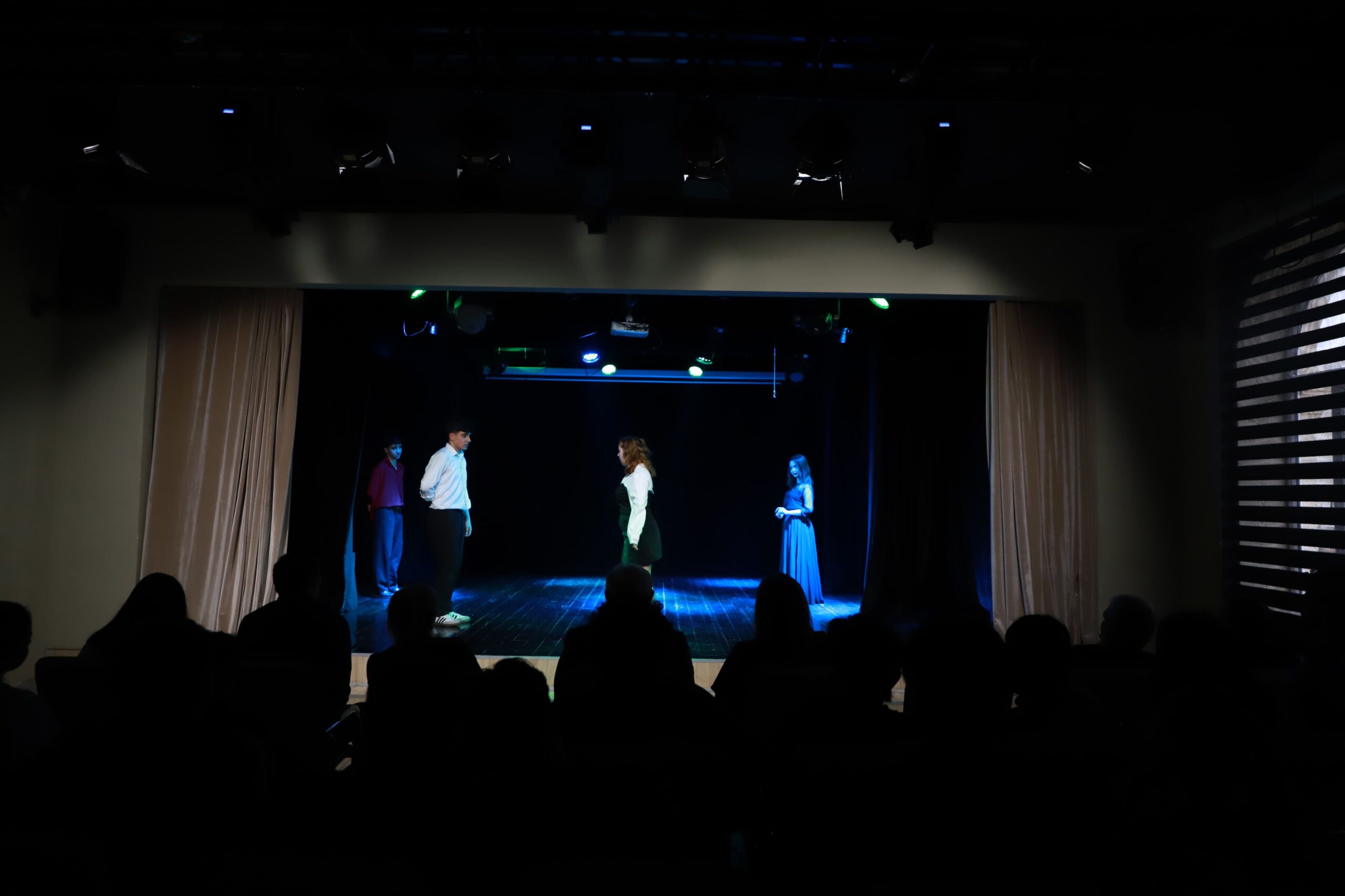 Azərbaycan Dövlət Mədəniyyət və İncəsənət Universitetində (ADMİU) Xalq yazıçısı Kamal Abdullanın müəllifi olduğu “Bir, İki – Bizimki!” tamaşası nümayiş olunub. SABAH qruplarının Rejissorluq ixtisası III təhsil ili tələbəsi Ülvi Məmmədlinin quruluşunda ərsəyə gələn səhnə işi postmodern estetikanı və müasir teatr dilini uğurla bir araya gətirərək tamaşaçılarda dərin təəssürat yaradıb. Tamaşada tələbələr – Samirə Xanlarova (qadın), Rəşad Dadaşov (kişi), Əsmər Həbibli (qız səsi), Yusif Vəlizadə (oğlan səsi) iştirak ediblər.