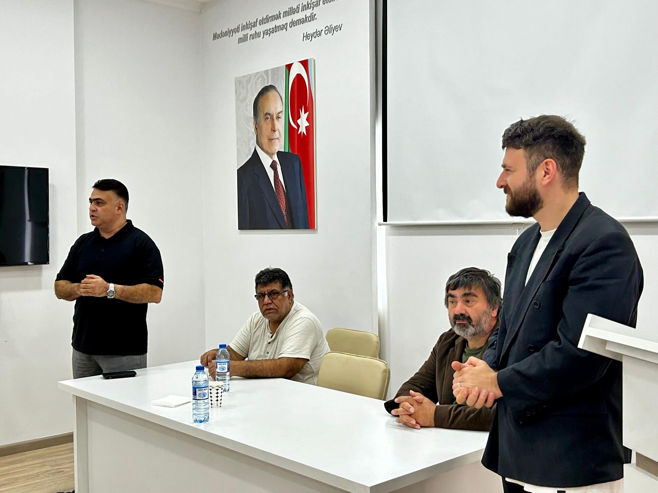 ADMİU-nun Audiovizual sənətlər fakültəsinin Kino-televiziya sənətləri kafedrasının təşkilatçılığı ilə keçirilən görüşü giriş sözü ilə açan kafedrasının müdiri dosent Elnur Mehdiyev qonaqları tələbələrə təqdim edib, bu kimi görüşlərin rejissorluq sənətini öyrənən gənclər üçün böyük fürsət olduğunu bildirib.