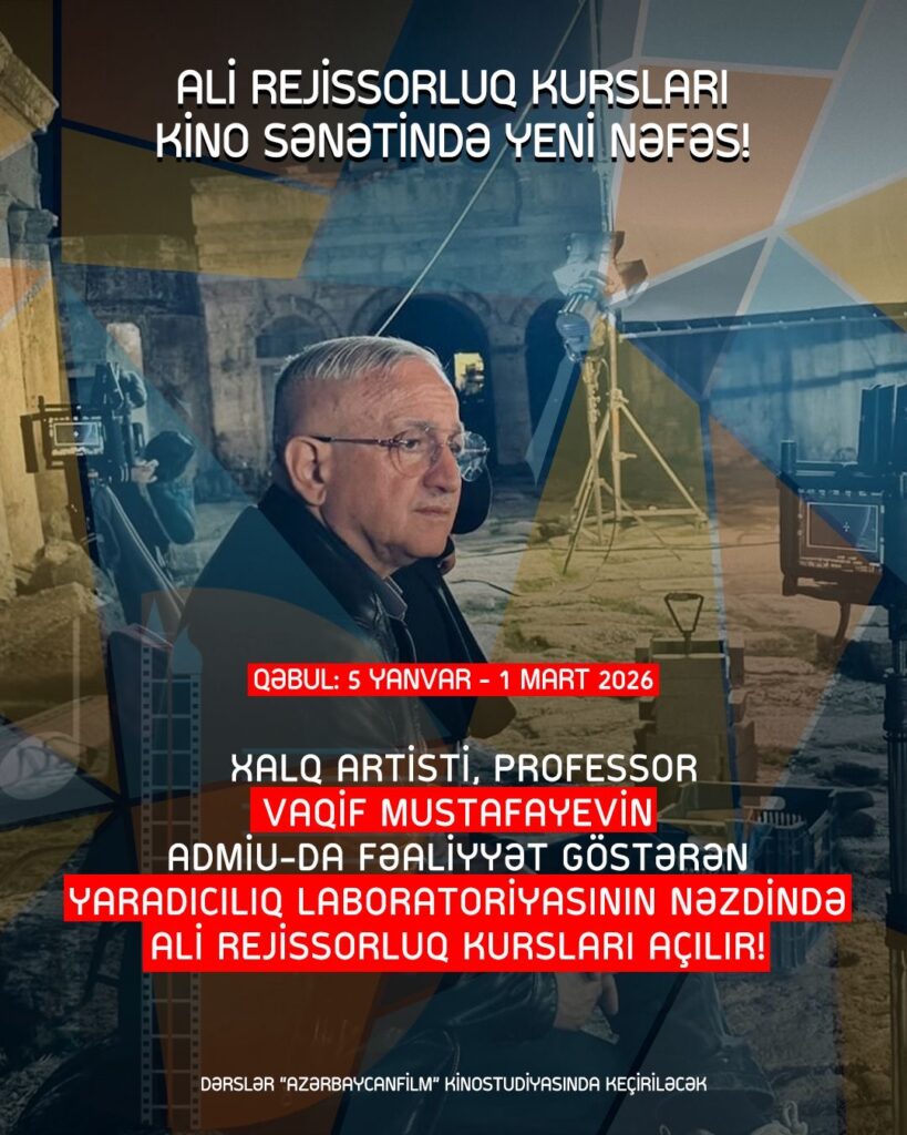 Azərbaycan Dövlət Mədəniyyət və İncəsənət Universitetində (ADMİU) Xalq аrtisti, Azərbaycan Respublikası Dövlət Mükafatı laureatı, Avropa Kino Akademiyasının üzvü, professor Vaqif Mustafayevin yaradıcılıq laboratoriyası fəaliyyət göstərir. Laboratoriyanın nəzdində müasir dünyagörüşünə, milli və dünya kinematoqrafiya estetikasını dərindən anlayan yeni nəsil rejissorların yetişdirilməsi məqsədi ilə Ali Rejissorluq Kursları açılır. Kurslarda respublikamızın və xarici ölkələrdən dəvət edilmiş […]