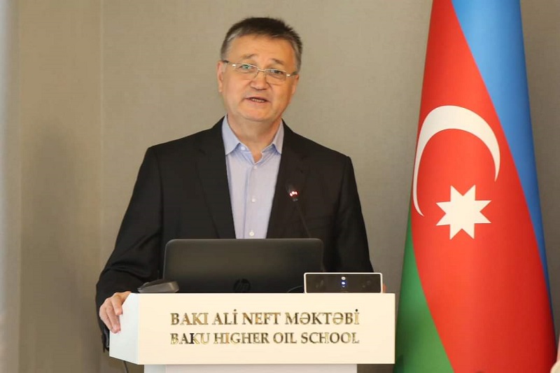 Sonda Bakı Ali Neft Məktəbinin rektoru Marian Predaya “Fəxri qonaq” plaketini təqdim edib.
