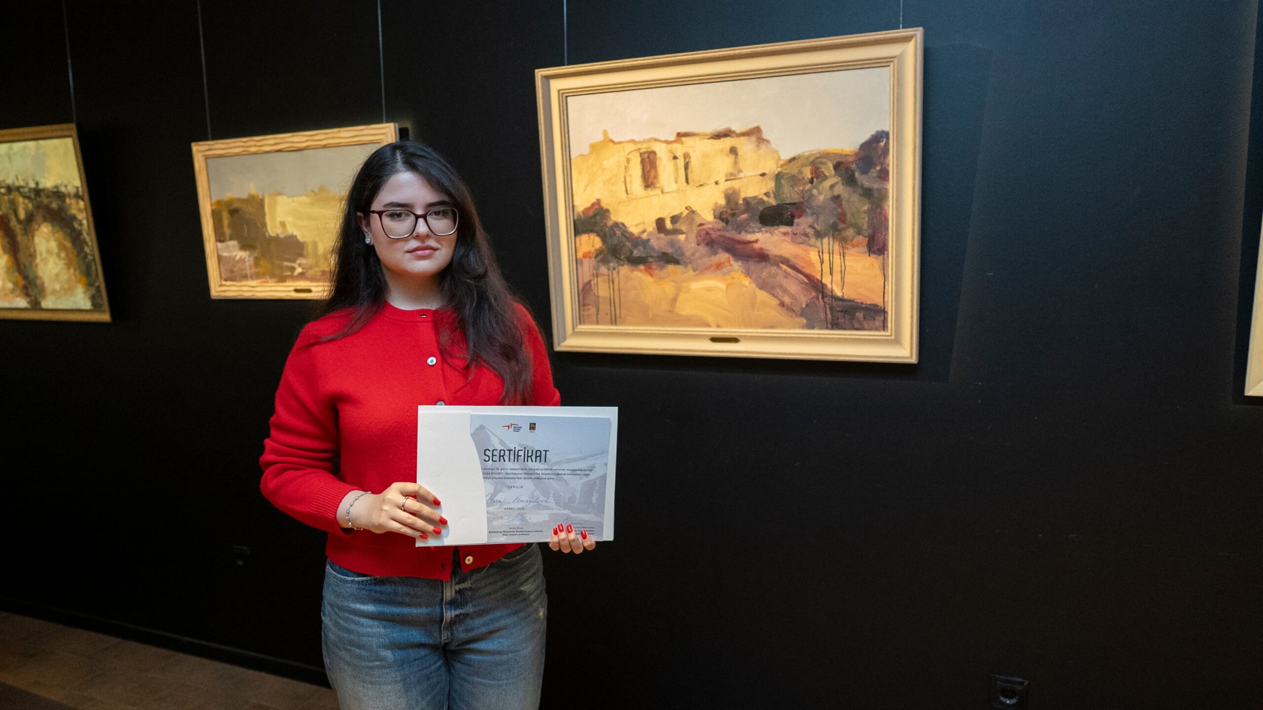 Rəsm əsərlərinin müəlliflərinə sertifikatlar təqdim olunub.