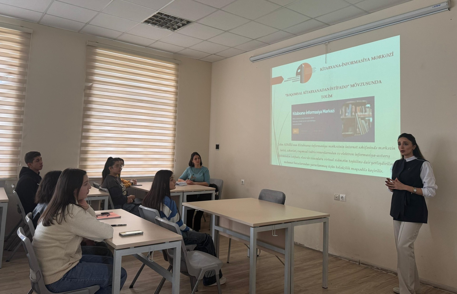 ADMİU-nun Kitabxana-informasiya mərkəzinin əməkdaşları tərəfindən universitetin hər bir fakültəsində müvafiq ixtisaslar üzrə I təhsil ilinin tələbələri üçün təşkil edilən “Rəqəmsal kitabxanadan istifadə” mövzusunda təlimlər başa çatıb. Mərkəzin fəaliyyətinin mühüm istiqamətlərindən biri olan təlimlərin keçirilməsinin əsas prioriteti tələbələrin ənənəvi kitabxana-biblioqrafiya və informasiya xidmətlərindən istifadəyə cəlb olunması, veb səhifədə yerləşdirilmiş rəqəmsal tədris resurslarından, elektron informasiya-axtarış sistemindən və oxuculara virtual xidmətdən operativ istifadənin təşviq edilməsi olub. Qarşıya qoyulan məqsədə uyğun olaraq ənənəvi və elektron kitabxana xidmətləri ilə ətraflı tanışlıq, kitabxana fonduna yeni daxil olan nəşrlərin təbliği, internet səhifədə yerləşdirilmiş rəqəmsal tədris resursları ilə geniş məlumatlandırma, elektron kataloq sistemindən və tələbatçılara virtual informasiya xidmətdən istifadənin təbliği vəzifələri uğurla həll edilib.